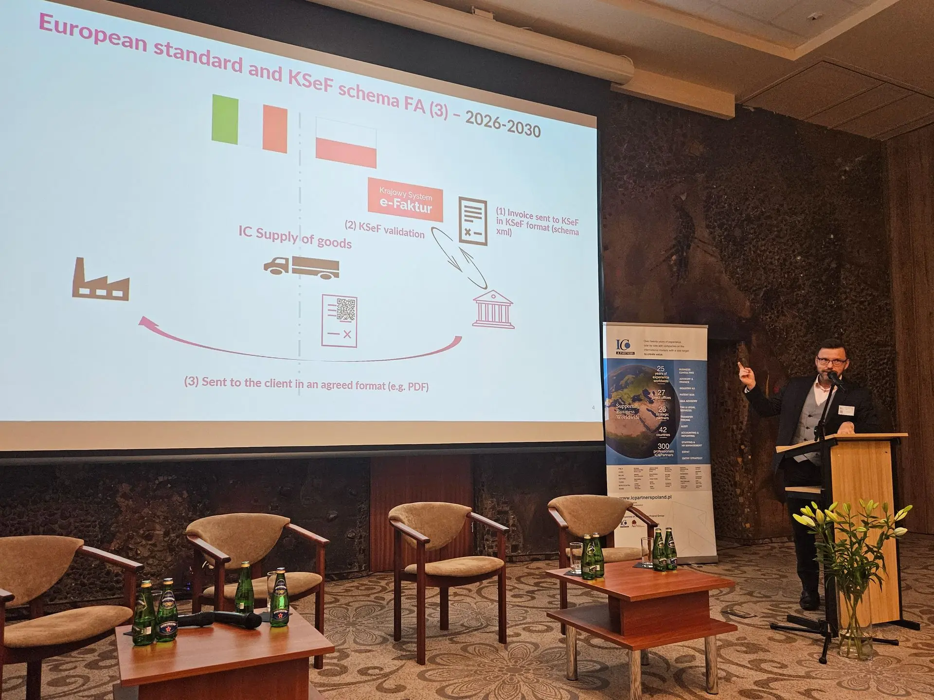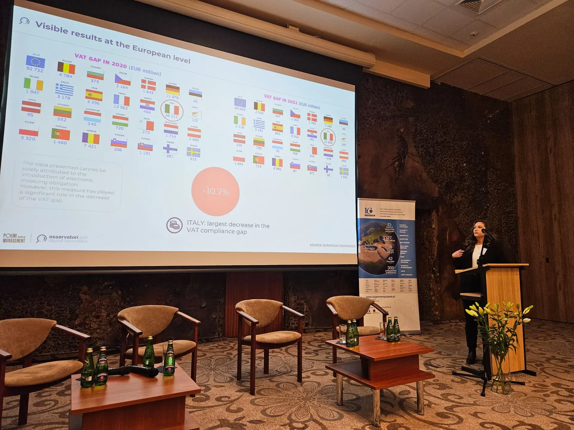 Katarzyna Parodi ha presentato le novità sulla fattura elettronica polacca e sullo KSeF, Krajowy System e-Faktur, previste per il prossimo anno con Dr Paweł Selera che ha completato il quadro con le ultime novità sul progetto di fatturazione europea Vida. Paola Olivares e Aida Cavalera del Osservatori Digital Innovation del Politecnico di Milano hanno poi approfondito il modello italiano insieme a Stefano Nalesso di MC Polska.